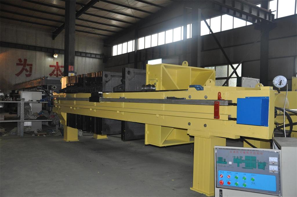 框式壓濾機能應用在濾渣的壓縮難度大的混合液場合。這些混合液通常具有10%以下細粒含量,0.3-1.6MPa 的壓緊壓力,特別的能夠達到3MPa甚至更大。過濾面積可增加或者減少因使用濾板和濾框個數的不同而不同。板框的形狀一般是正方形,濾框的內邊長取值范圍在一般0.2-2m,框厚度的取值范圍一般在0.016-0.08m,過濾的面積在1㎡到1200㎡間。