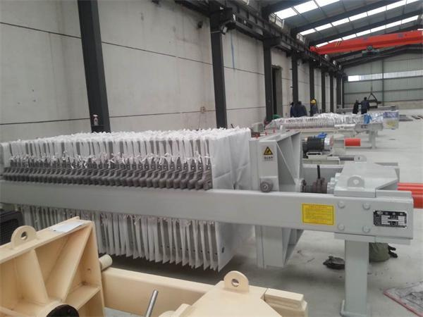 板框壓濾機由交替布置的多個濾板和濾框組成。濾板表面有凹槽,支撐濾布突出。濾板框架和濾板角上有通孔,組裝后形成完整通道,可進入懸浮液,洗滌水,引導濾液。板和框架兩側的把手支撐在梁上,板和框架被按壓裝置按壓。板和框架之間的濾布用作墊圈。懸浮液的壓力通過進料泵引入過濾室,在過濾布上形成濾渣,直到過濾室填滿。濾液穿過濾布,沿著濾板的凹槽流入板框的拐角通道,然后排出。過濾完成后,可以用洗滌水清洗濾渣。清洗后,有時會引入壓縮空氣去除殘留的清洗液。然后打開壓濾機去除濾渣,清洗濾布,重新壓緊板,框架,開始下一個工作周期。