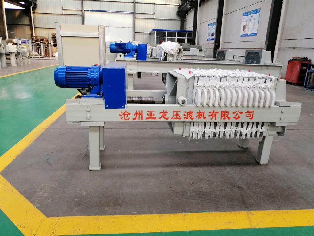 是壓縮:過濾裝置告訴您操作前需要檢查壓濾機:檢查濾布是否折疊或重疊,電源連接是否正常。檢查后,可以執(zhí)行按壓操作。先按“啟動”按鈕啟動油泵,然后再按“按下”按鈕。當(dāng)壓力達到設(shè)定的高壓時,活塞推動壓板進行按壓。液壓系統(tǒng)自動停止